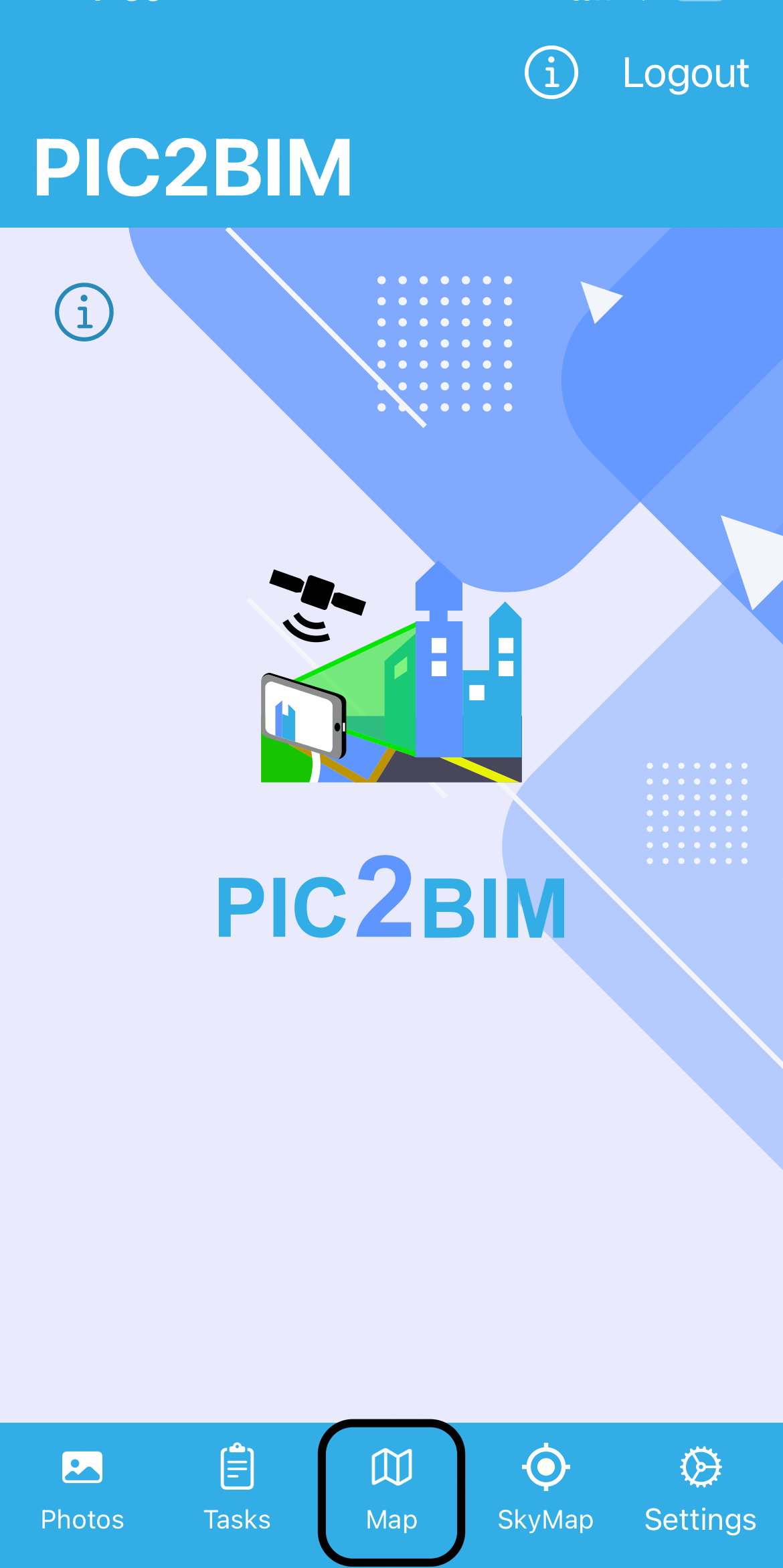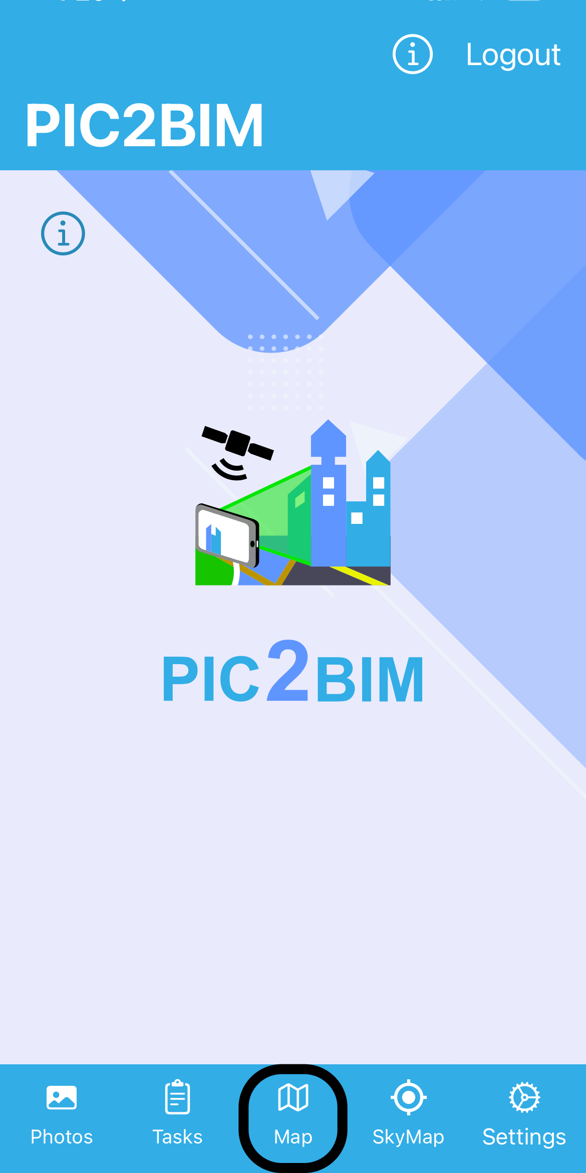 For the first login, request a username and password at https://pic2bim.co.uk/ or use the demo credentials (demo/demo).