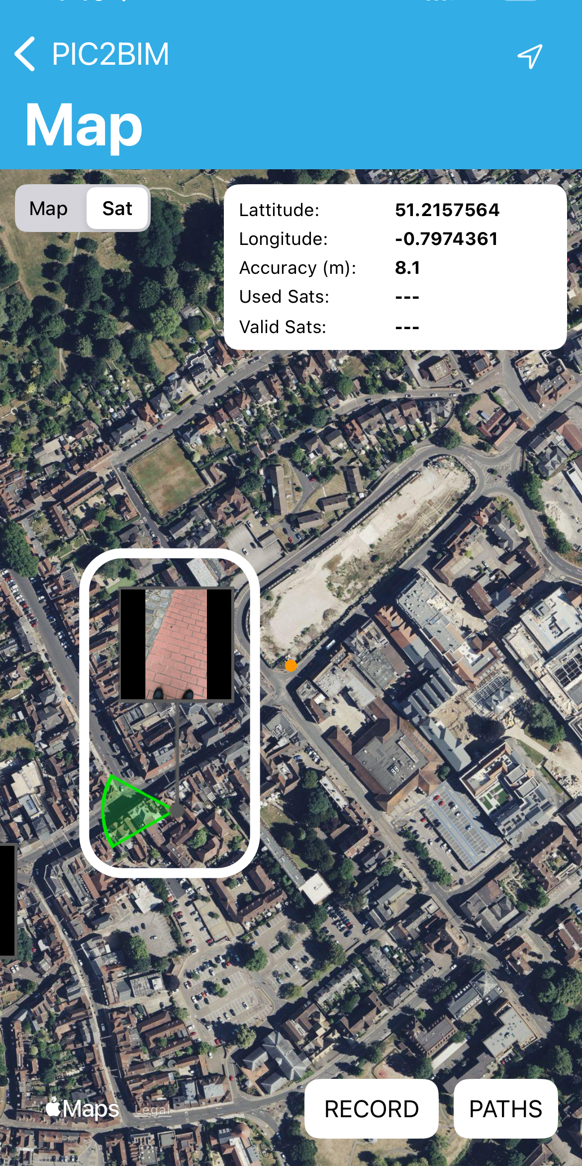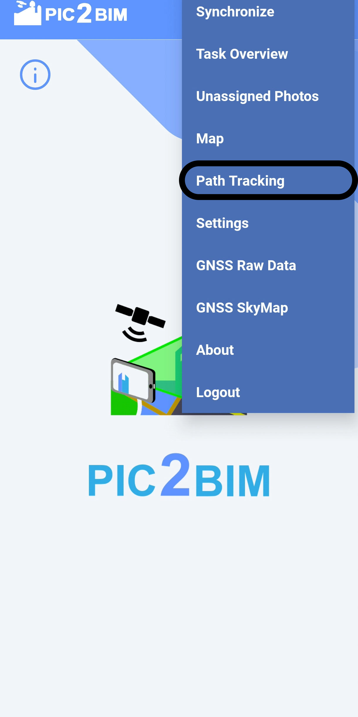 Click on Path Tracking. Choose to either record a new path or browse previously recorded paths, which can be sent to the GeoBIM Portal or exported to a KML file.