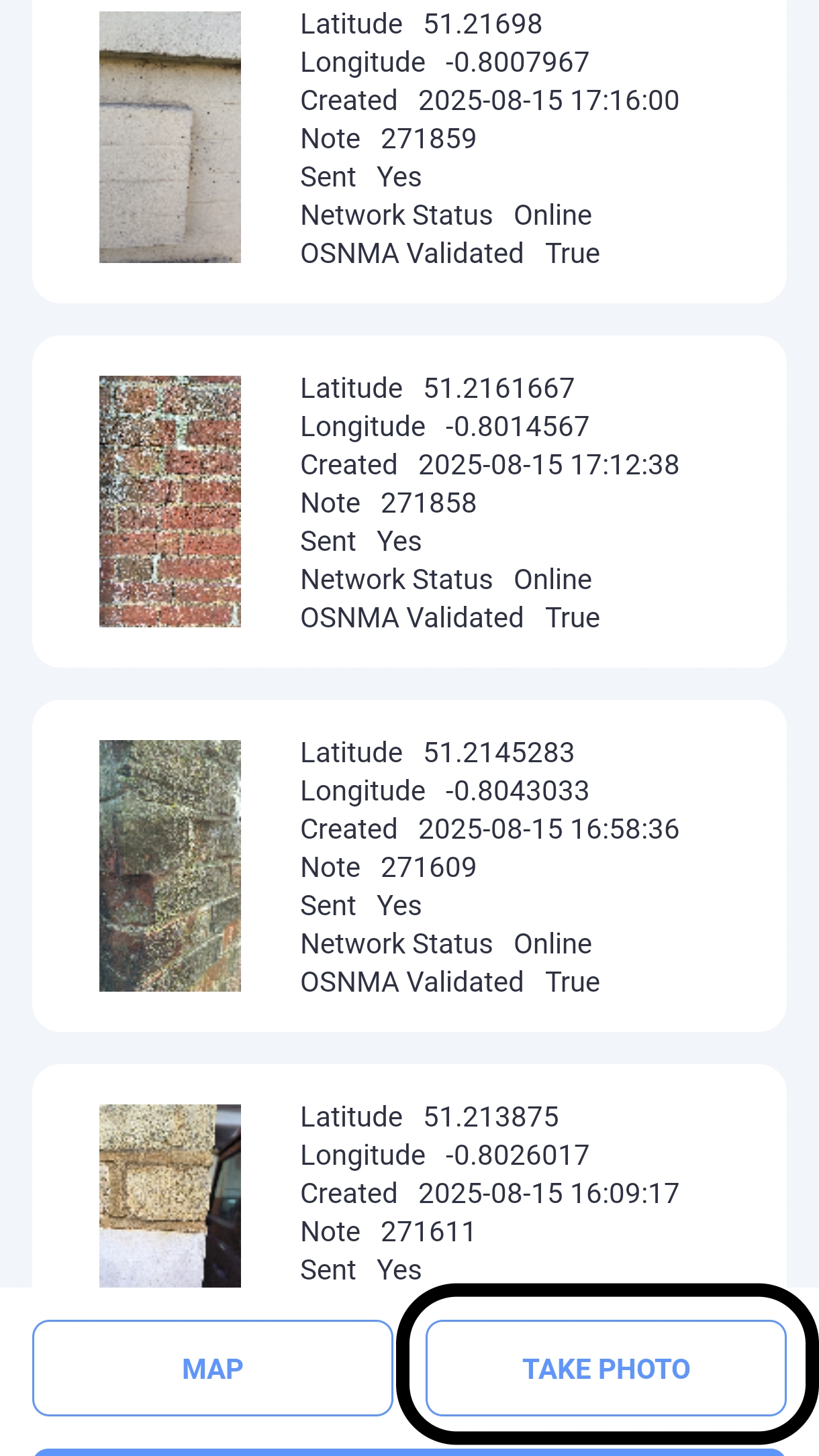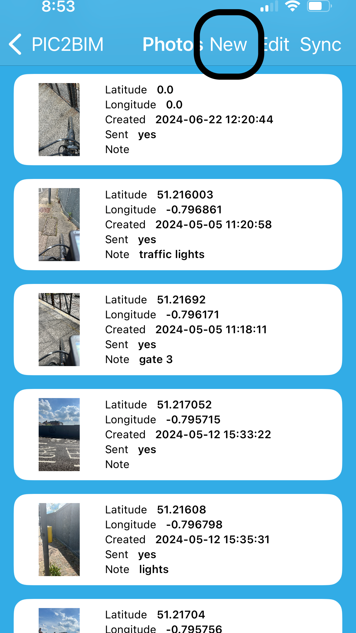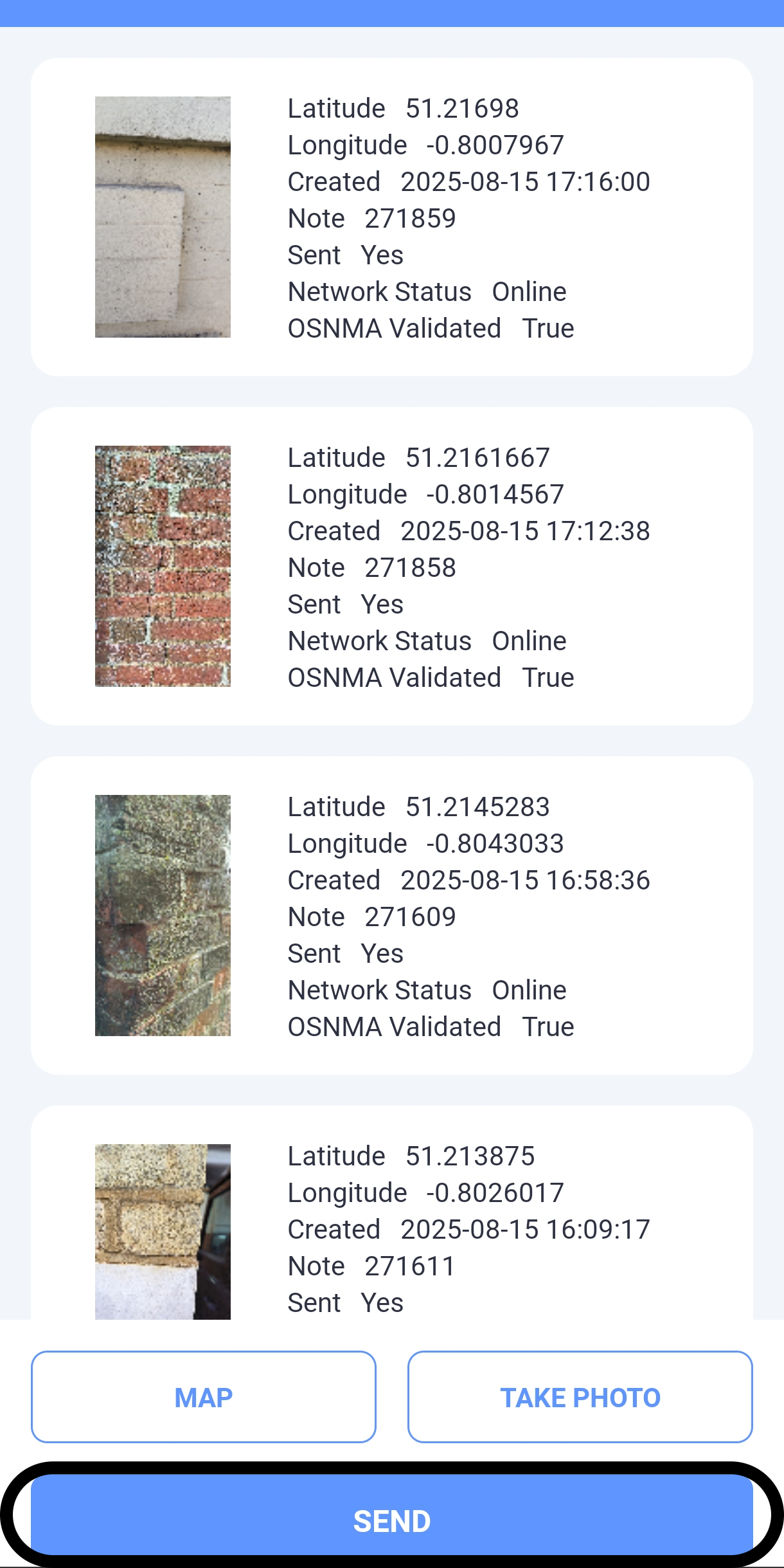 On both Android and iOS, tap SEND to upload your photos to the GeoBIM Portal.