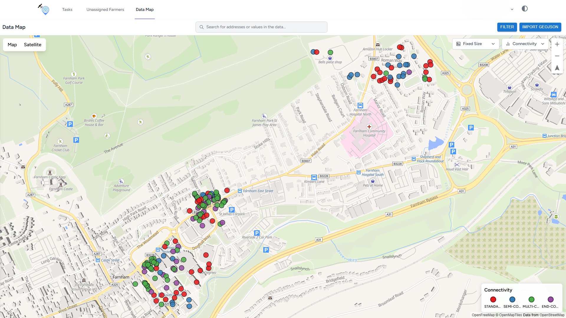 - Switch between map view and satellite view