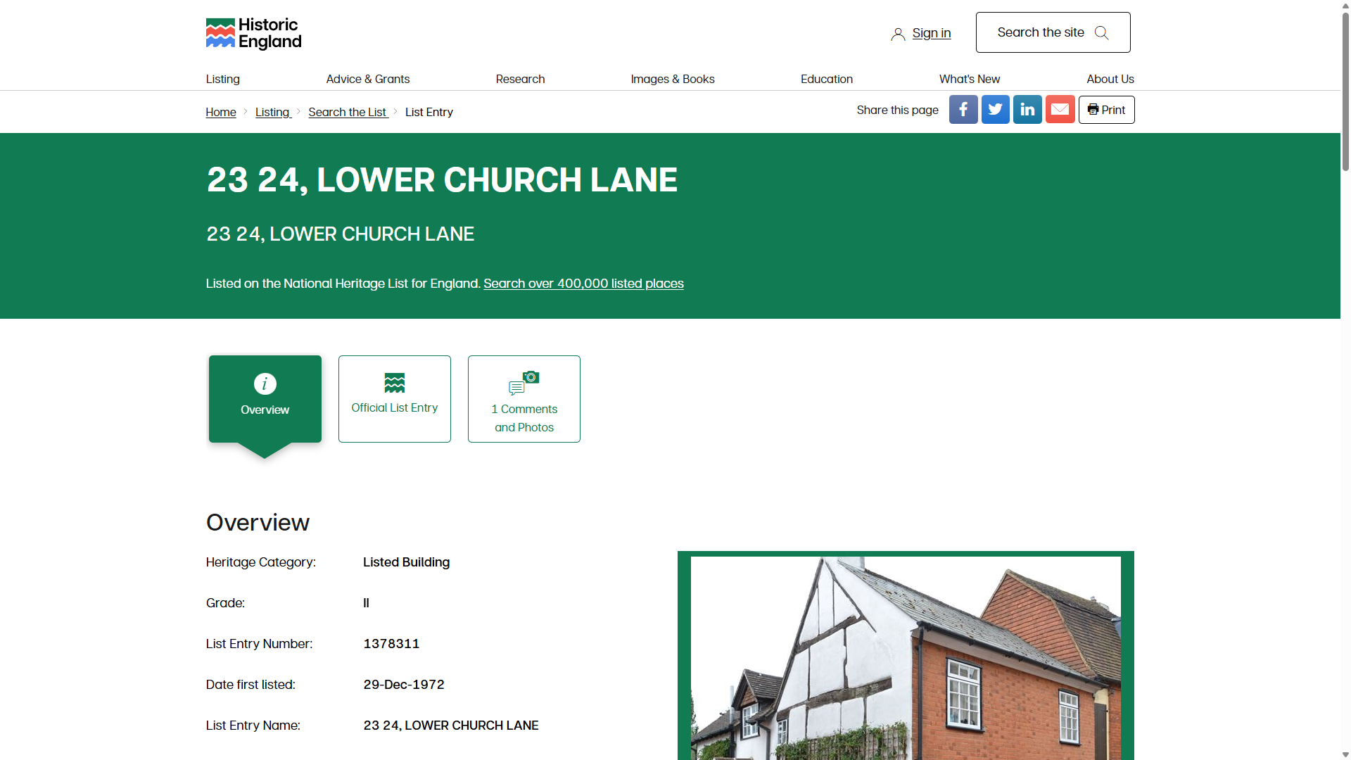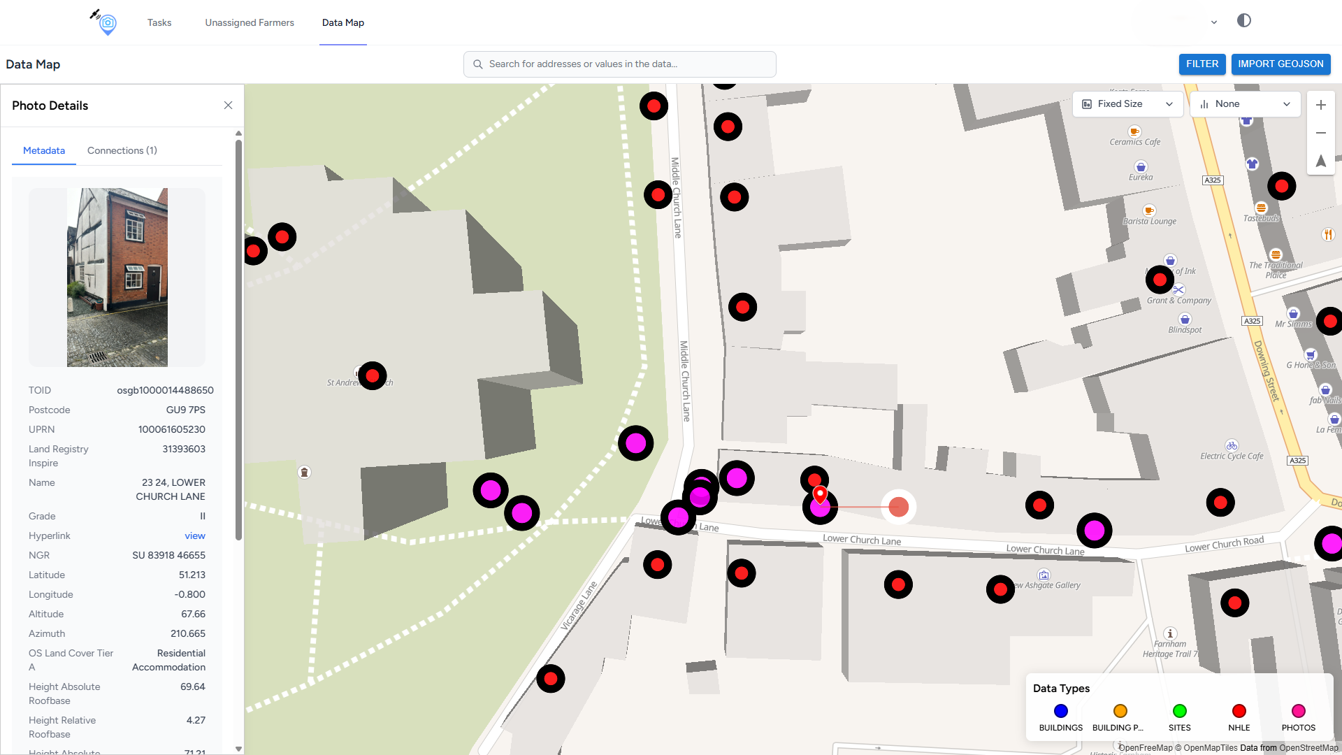 Connect Photo → NHLE using Land registry polygon