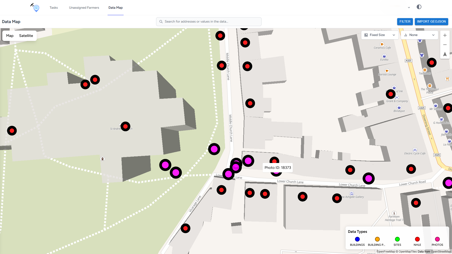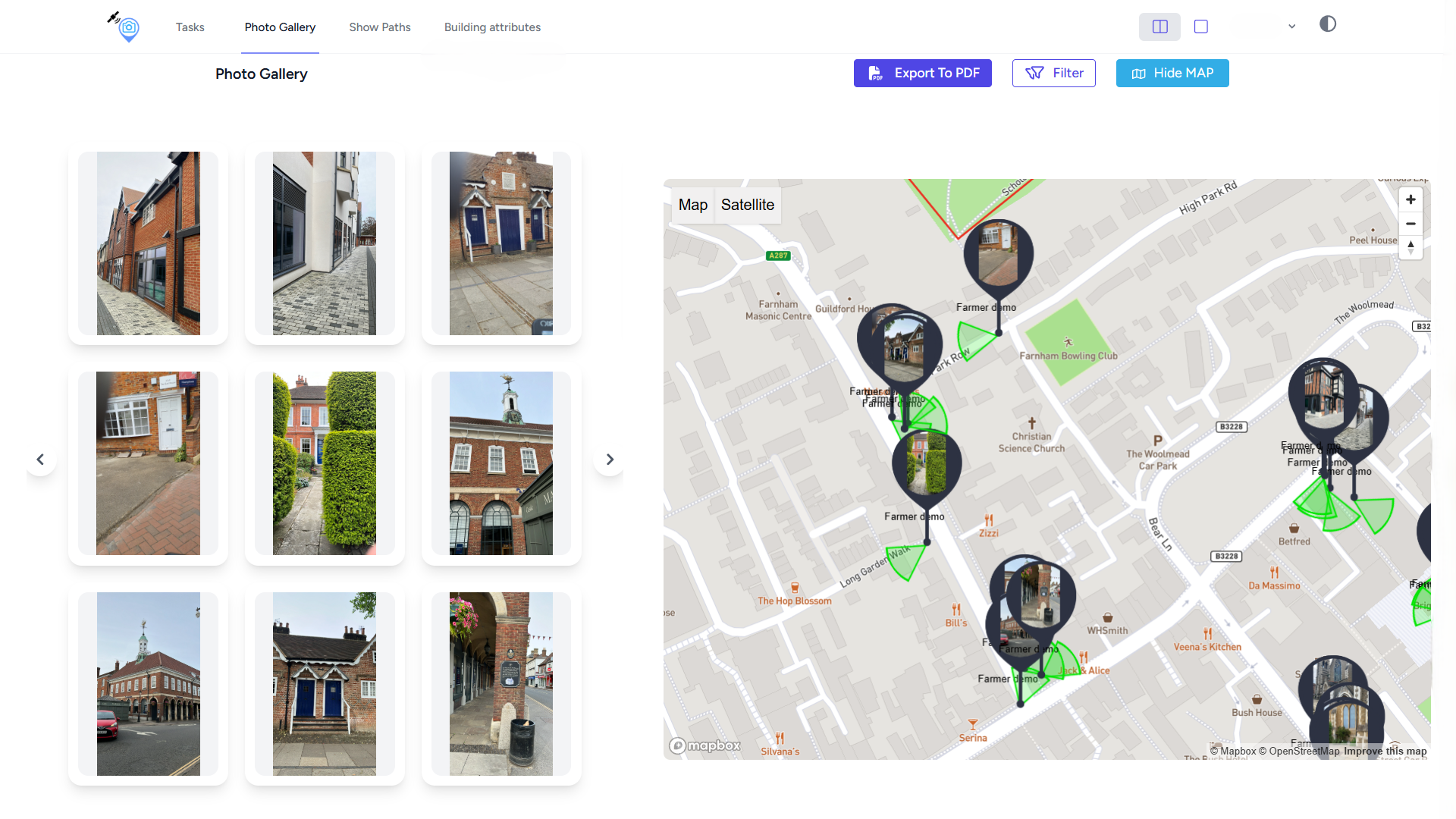 - See how each photo is linked to its building footprint (see Building and Site Data)