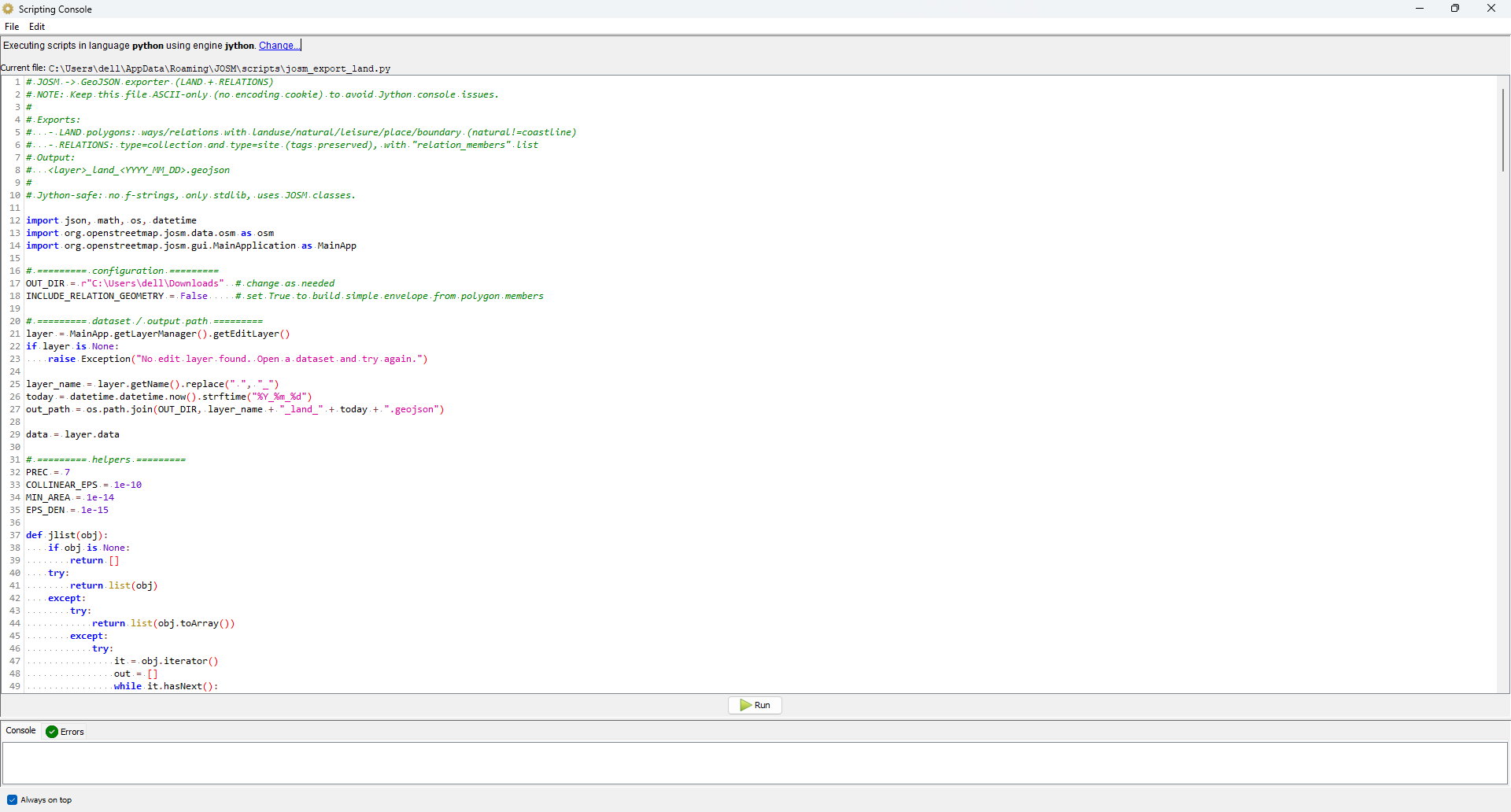 JOSM Export Land → Import Portal