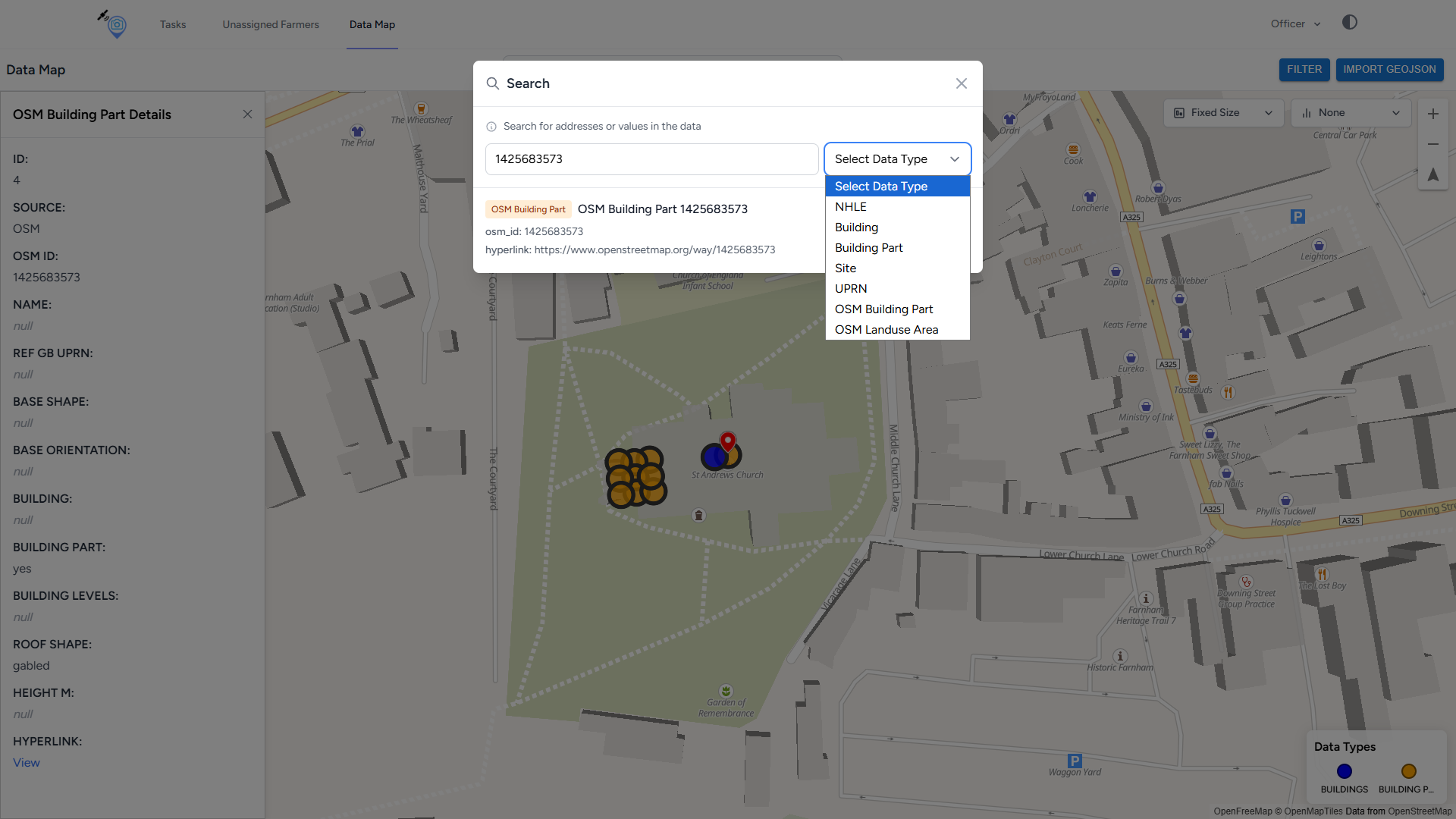 Search open street map building part ID