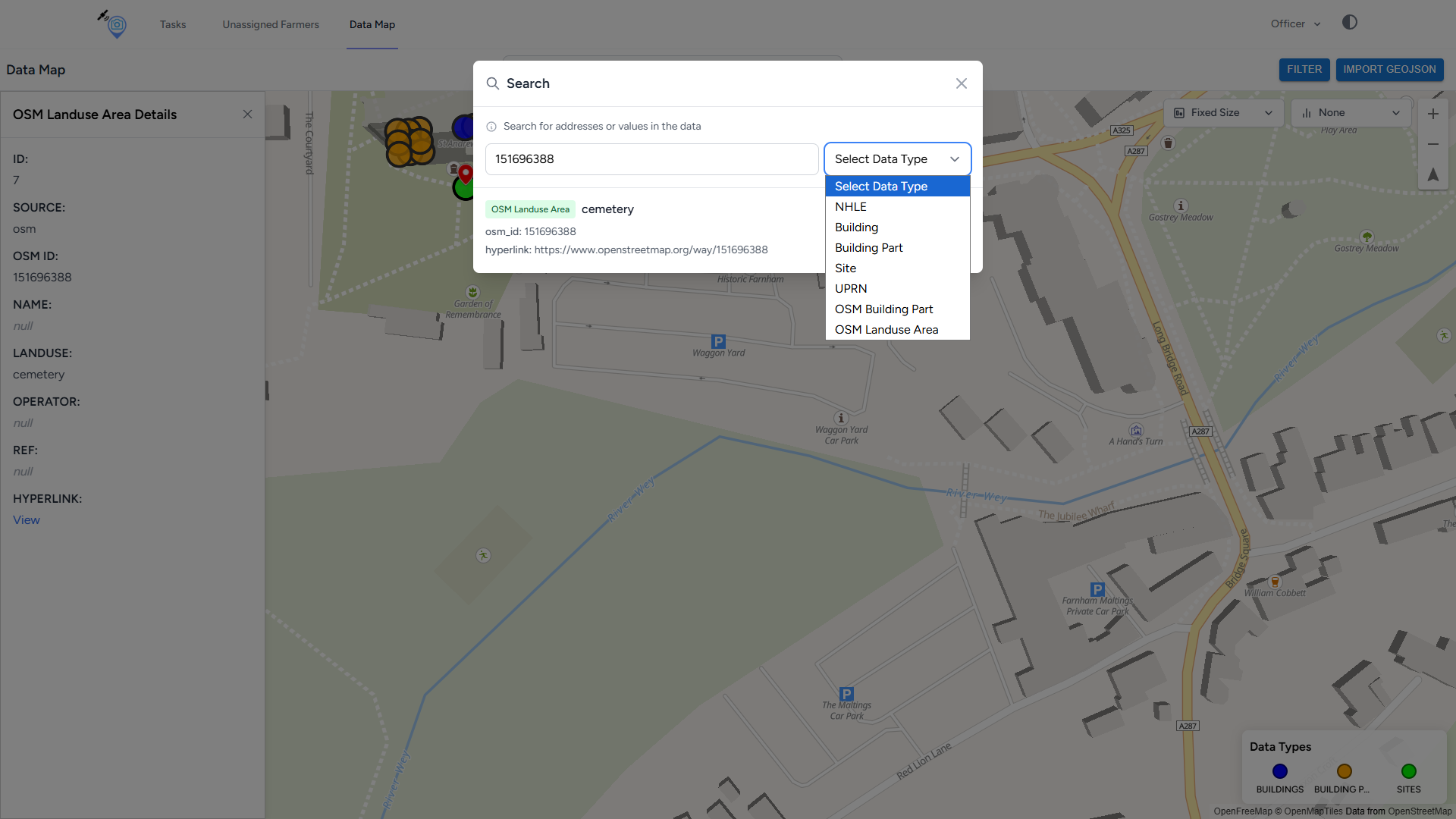 Search open street map landuse ID