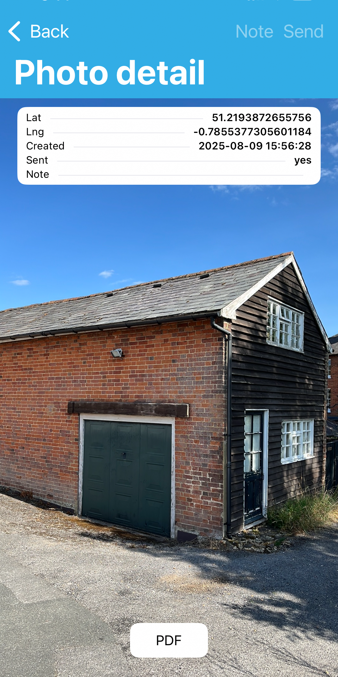 - Tapping SEND uploads photos to the GeoBIM Portal.